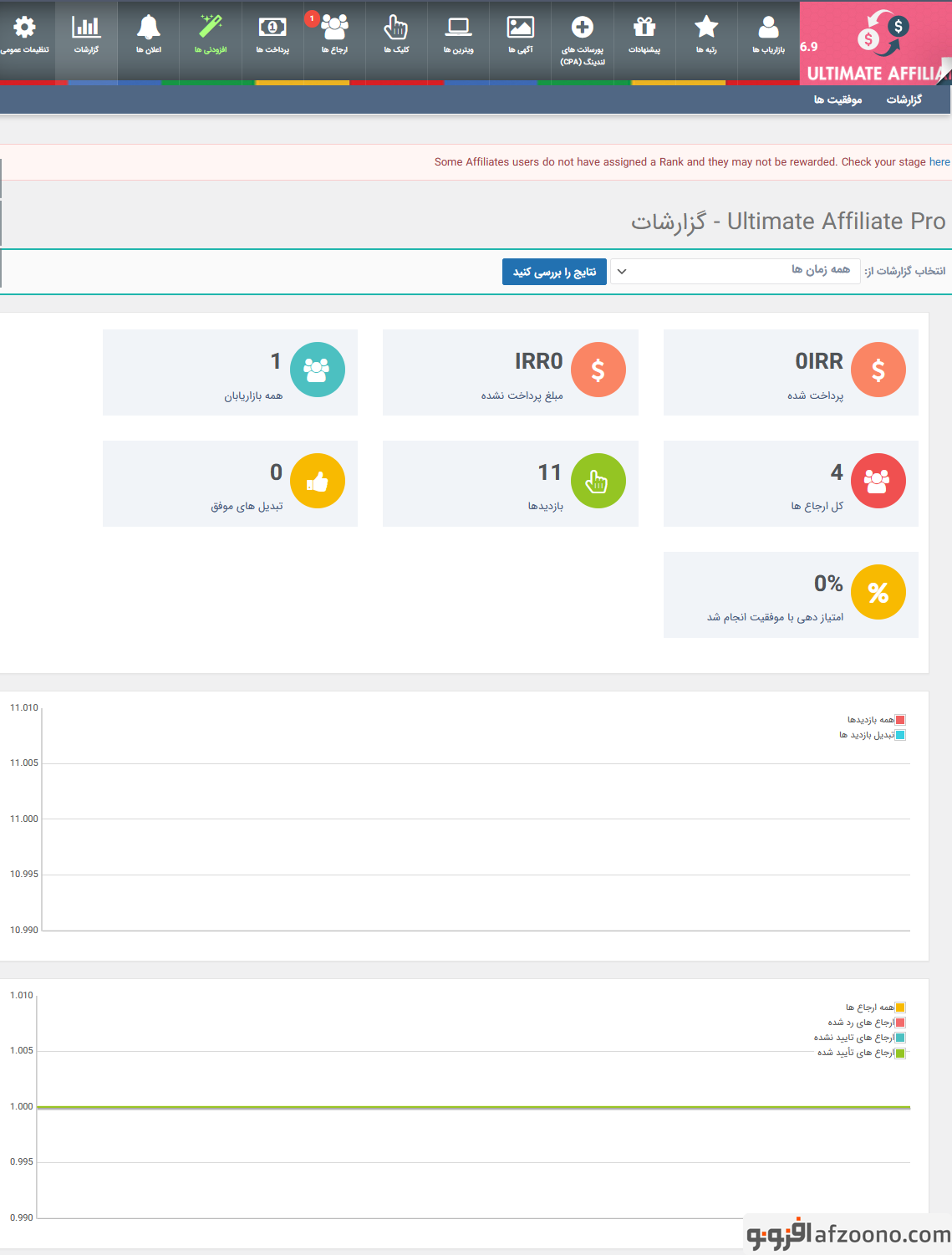 افزونه Ultimate Affiliate Pro که میتوانید از آن در جهت ایجاد سیستم همکاری در فروش و بازاریابی در وردپرس استفاده کنید. این افزونه حرفه ای Ultimate Affiliate Pro که با سیستم های فروشگاه ساز ووکامرس ، ایزی دیجیتال دانلودز و همچنین Ultimate Membership Pro سازگاری کامل دارد و بهترین گزینه در زمینه ایجاد سیستم های همکاری در فروش و ایجاد کمپین های تبلیغاتی در جهت همکاری در فروش می باشد.با این افزونه کاربران می توانند با عضویت در سیستم همکاری در فروش شما و استفاده از ابزارهای در دسترس همکاری در فروش اقدام به معرفی محصولات شما به دیگران کنند و با معرفی ، اقدام به کسب درآمد کنند.بزرگترین امتیاز این افزونه فارسی بودن میباشد که برای پارسی زبانان عزیز در سایت افزونو آماده دانلود میباشد.