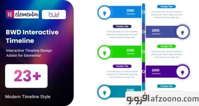 بی دابلیو دی اینتراکتیو تایم لاین افزونه نمایش خط زمان تعاملی برای صفحه ساز المنتور Interactive Timeline addon for elementor