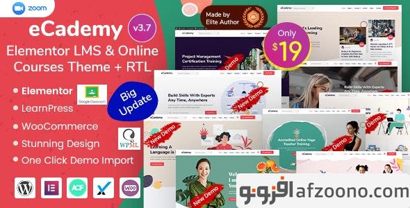 قالب Ecademy یک قالب وردپرس آموزشی است که برای آموزش و برگزاری دوره های آنلاین طراحی و ساخته شده است. این سایت برای موسسات آموزشی، ارائه دهندگان دوره های آنلاین، آموزش آنلاین، مدیریت یادگیری، آموزش صدور گواهینامه فروشنده، مدارس، LMS، آموزشگاه زبان، ارائه دهنده یادگیری از راه دور و… مناسب است.
