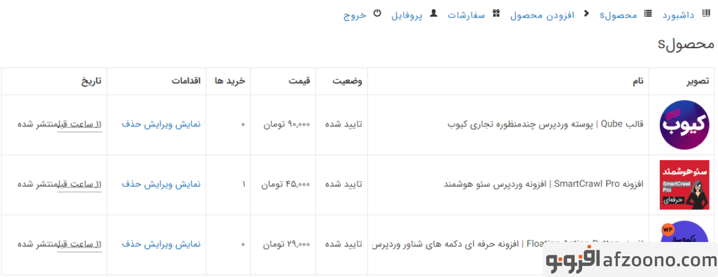 - ظاهر کامل داشبورد فروشنده برای فروشندگان “برای مدیریت محصولات، مشخصات، سفارشات و غیره”