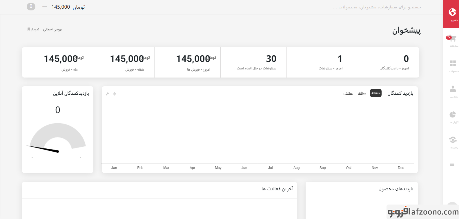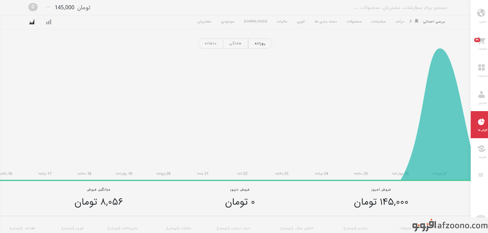 - یک رابط زیبا برای مدیریت سفارش ها ، محصولات ، کوپن ها ، دیدگاه ها و گزارشات