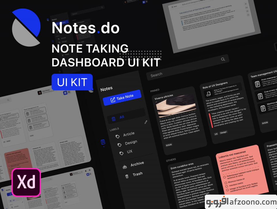 Notes.do is high quality and well organized notes taking dashboard Ui Kit. You can create note taking web-based with great user-experience using Notes.do dashboard UI Kit .The template is specially designed keeping the needs of users in mind. This XD file is fully layered and is well organized by layer name. Free Sf Pro font used.