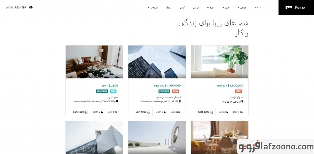 estate نام یک قالب فارسی جوملا با موضوع مشاور املاک است که بصورت تخصصی توسط تیم افزونو فارسی سازی شده است. ین قالب بصورت کاملا ریسپانسیو و واکنشگرا طراحی شده است و ویژگی های منحصر به فرد این قالب باعث شده است که به یکی از بهترین و پرطرفدار ترین قالب ها در زمینه ی مشاور املاک تبدیل شود.