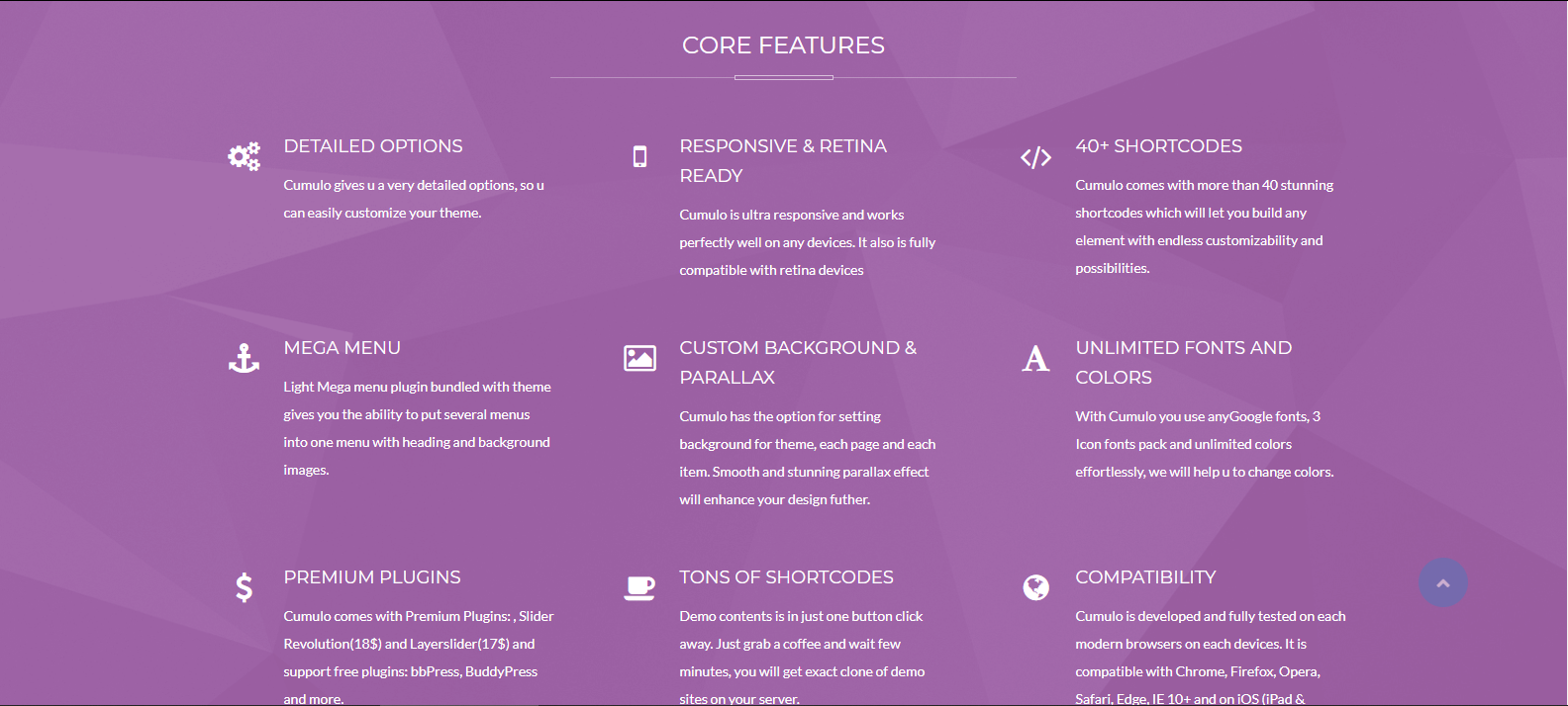 Cumulo نام یک قالب فارسی وردپرس چندمنظوره می باشد. این قالب به صورت تخصصی توسط تیم افزونو فارسی سازی شده است.شما با داشتن این قالب از بسیاری از قالب های دیگر بی نیاز خواهید بود.با داشتنت این قالب قادر خواهید بود با کمی تغییر جزئی می توانید وبسایت خود را در زمینه های فروشگاهی،شرکتی،وبلاگی و … راه اندازی کنید.در ادامه به برخی از ویژگی های اصلی قالب می پردازیم.