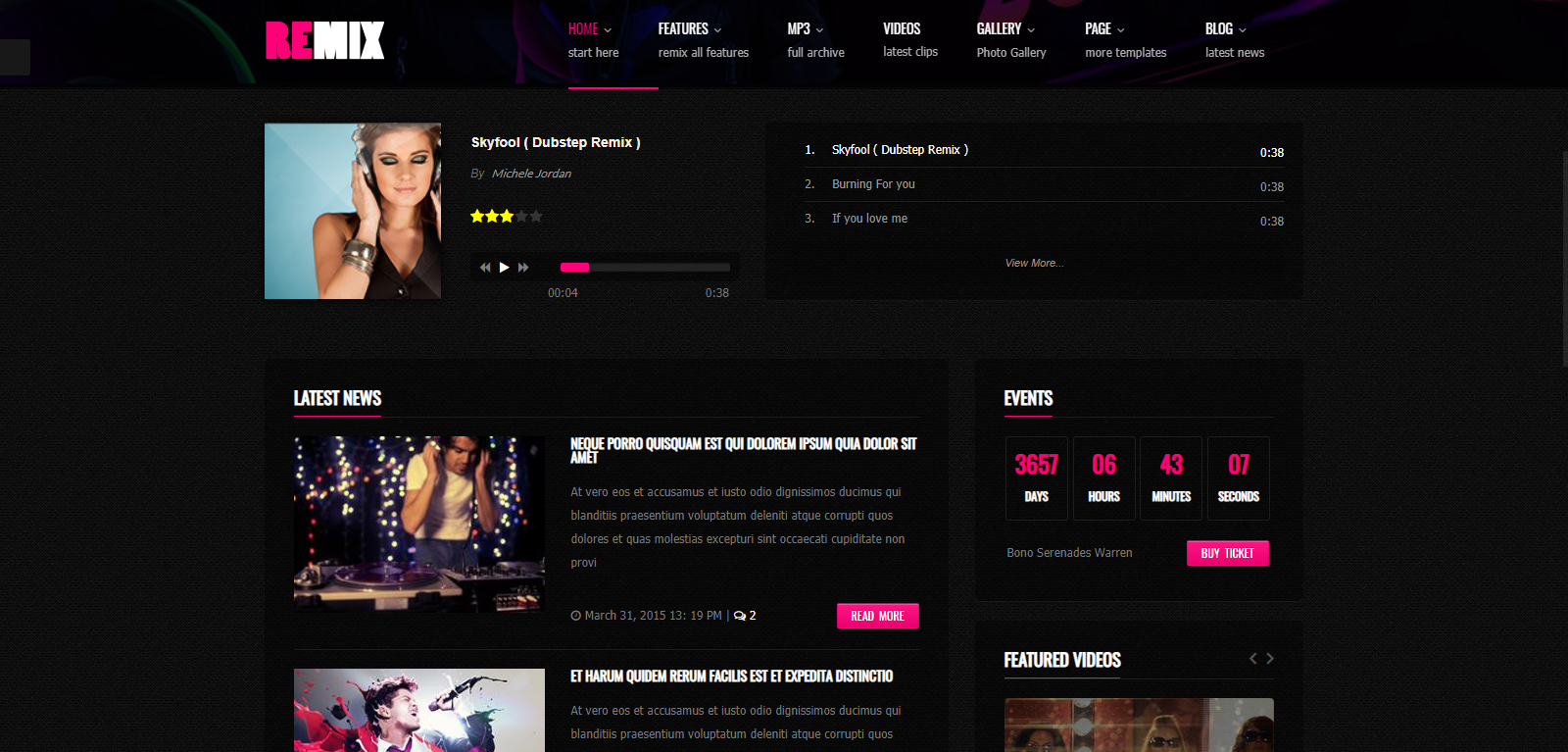 Remix نام یک قالب فارسی وردپرس می باشد که به صورت تخصصی برای وبسایت هایی با موضوع موسیقی و فیلم ساخته شده است. اکثر وبسایت های مشهور و پر کاربر که در زمینه موسیقی و فیلم فعالیت می کنند از این قالب استفاده می کنند.(این قالب شباهت بسیار زیادی به قالب رادیو جوان دارد)این قالب بسیار شیک و واکنش گرا است که به صورت تخصصی توسط تیم افزونو فارسی سازی شده است.در ادامه به برخی از ویژگی های اصلی قالب می پردازیم.