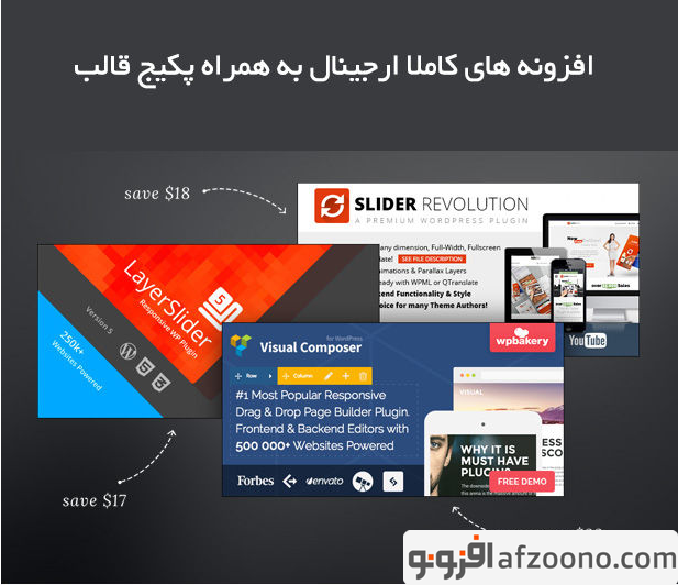 BeTheme نام یک قالب فارسی چندمنظوره وردپرس می باشد که توسط تیم افزونو فارسی سازی شده است از این قالب می توانید در وب سایت های خود با موضوع شرکتی ، فروشگاهی (ووکامرس) ، وبلاگ ، شخصی ، نمونه کارها ، خلاقانه و… استفاده نمایید. قالب وردپرس ریسپانسیو و فروشگاهی بی تم کاملا رسپانسیو میباشد و در تمامی دستگاههای نمایش با هر رزولیشنی به خوبی نمایش داده میشود. پنل تنظیمات قالب کاملا فارسی و حرفه ای میباشد و بیشتر تنظیمات رو از طریق پنل تنظیمات انجام بدید.در ادامه همراه ما باشید تا با برخی از ویژگی های اصلی قالب آشنا شویم.