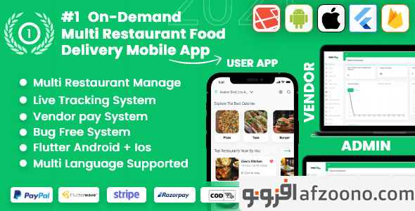 تحویل غذای رستوران های متعدد با Flutter App Mealup. سازگار با سیستم عامل های Android و IOS.