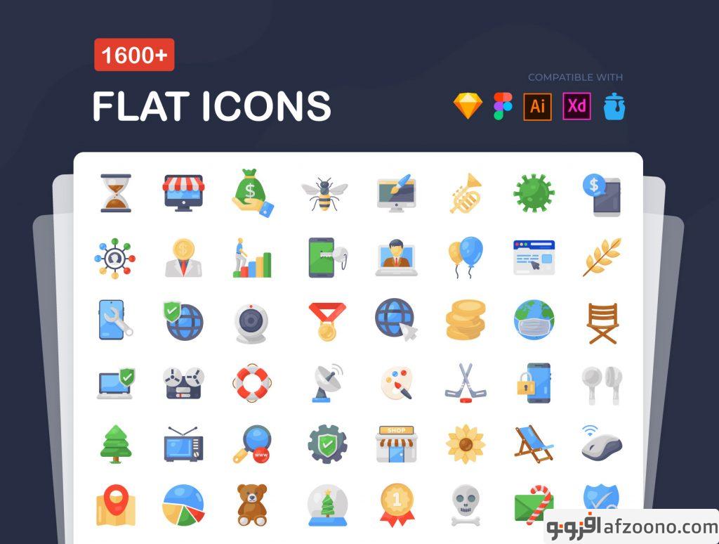 دانلود مجموعه آیکون متنوع 1600+ Flat Icons Pack