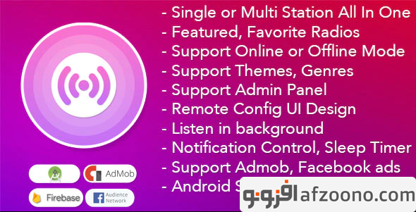 XRadio به شما کمک می کند تا با طراحی Material Beautiful برنامه رادیو را برای اندروید ایجاد کنید. با Powerfull Admin Panel می توانید ایستگاه های یک یا چند رادیویی را به صورت یکجا ایجاد کنید. شما میتوانید الگوی رادیو را برای ساخت برنامه پیدا کرده و به PlayStore ارسال نمایید.