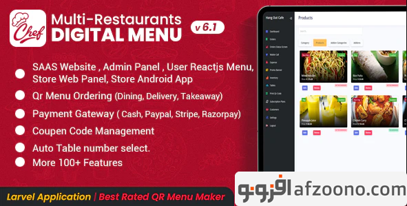 دانلود سورس اپلیکیشن رستوران CHEF – SaaS – Contactless Multi-restaurant QR Menu Maker