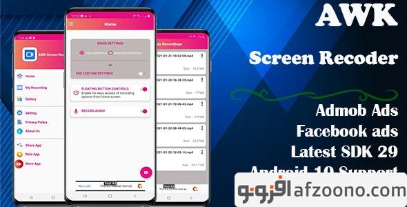 دانلود سورس اپلیکیشن اسکرین رکوردر (ضبط صفحه نمایش) اندروید AWK Screen Recorder with Audio
