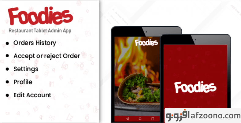 Foodies نام یک برنامه سفارش غذای اندروید است که صاحب رستوران می تواند از آن برای دریافت سفارشات و مدیریت پرداخت ها استفاده نماید.