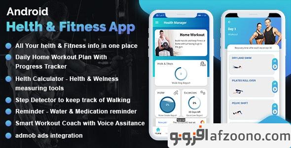 دانلود سورس اپلیکیشن اندروید سلامتی و تناسب اندام Workout Manager & Health Calculator for Fitness (Water medicine reminder & pedometer)