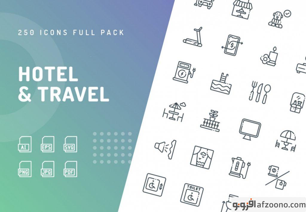 مجموعه طرح لایه باز آیکون هتل و سفر Hotel & Travel Icons