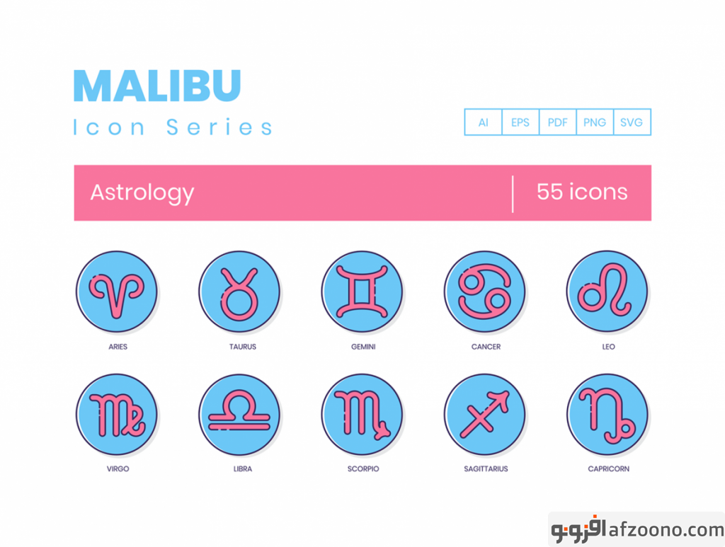 مجموعه طرح لایه باز آیکون ستاره شناسی 55 Astrology Icons