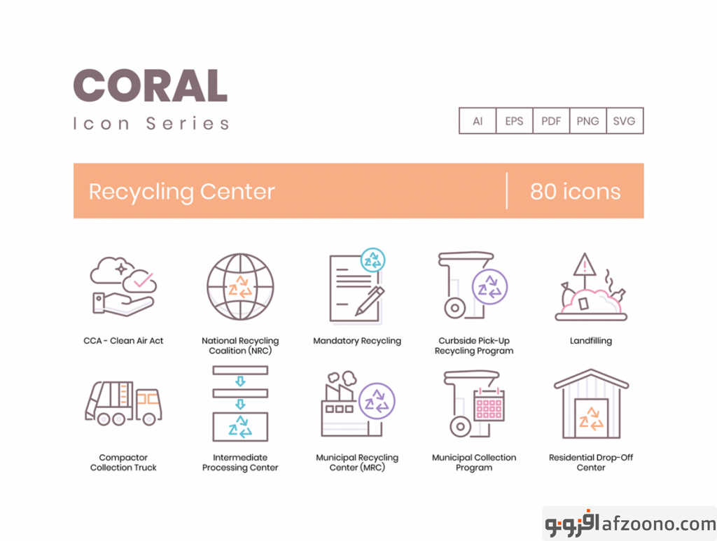 مجموعه طرح لایه باز 80 آیکون بازیافت Recycling Center Icons