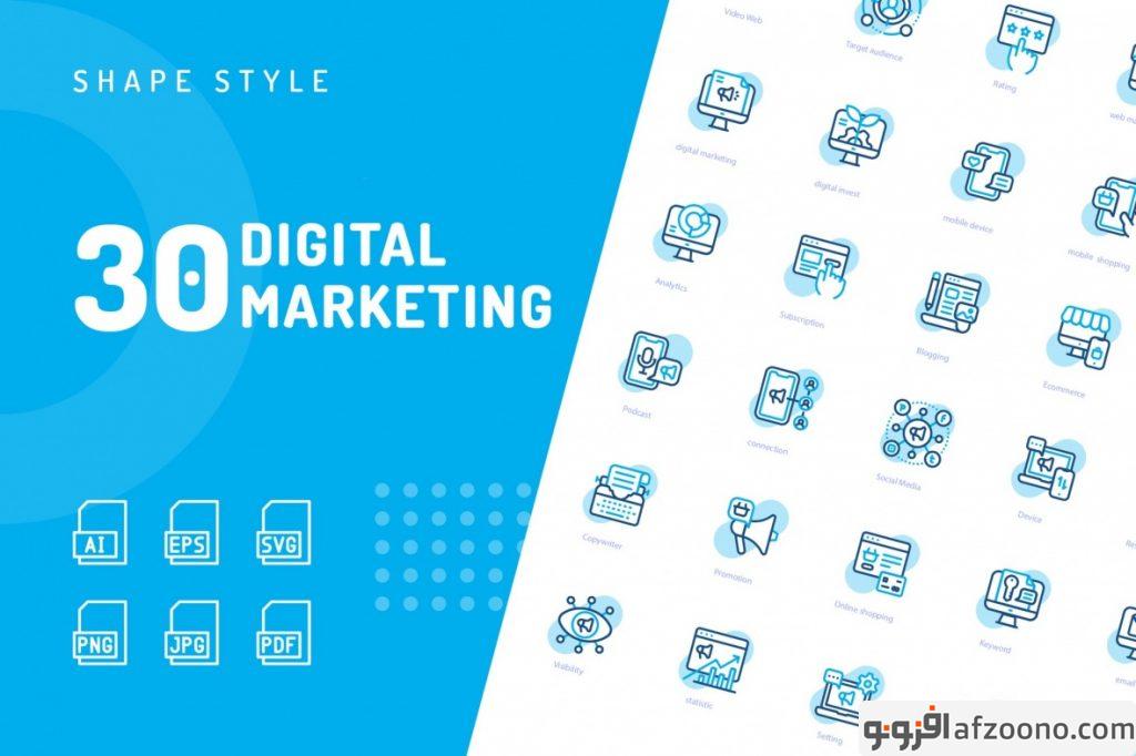 مجموعه آیکون بازاریابی دیجیتال در ۶ استایل مختلف Digital Marketing Shape Icons