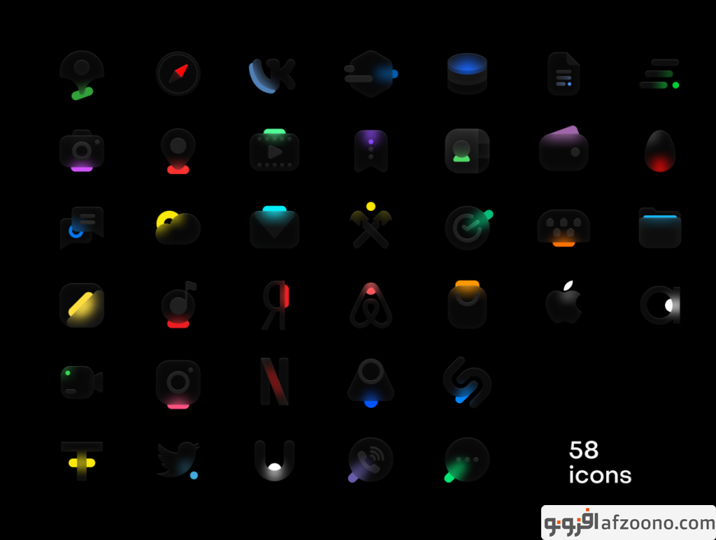 With these icons, you can make a beautiful glowing desktop in iOS14. The set contains the most popular applications from the Russian App Store