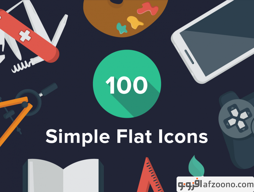 مجموعه طرح لایه باز آیکون 100 Simple Flat Icons