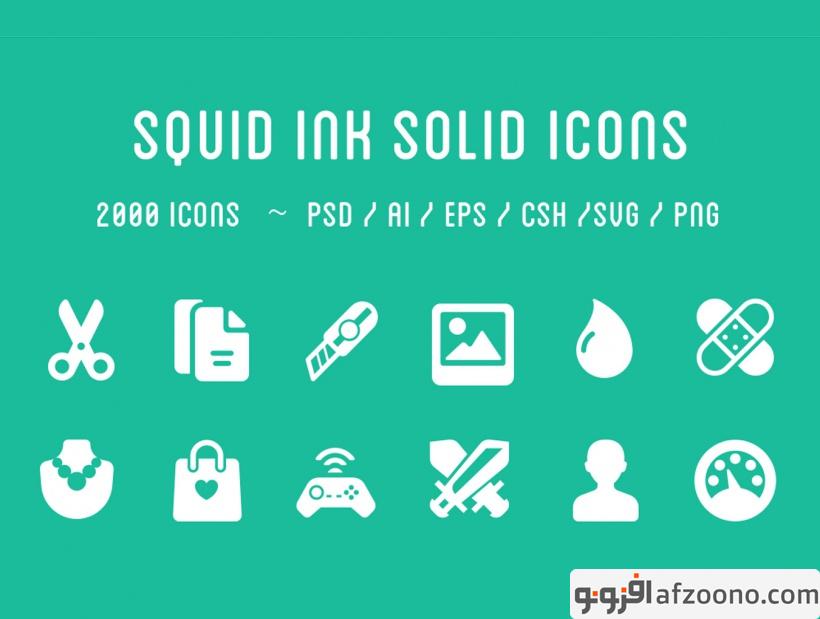 مجموعه طرح لایه باز آیکون Squid Ink Solid Icons