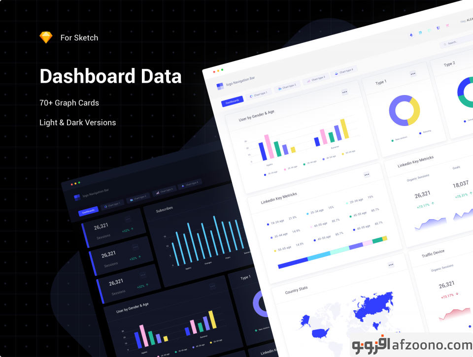 دانلود طرح لایه باز رابط کاربری دشبورد Data Visualization Dashboard UI Kit