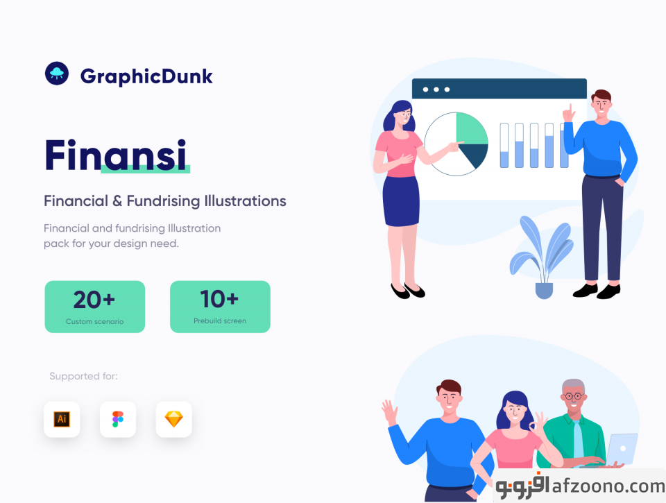 دانلود طرح لایه باز مجموعه تصویرسازی Finansi – Financial & Fundrising Illustrations