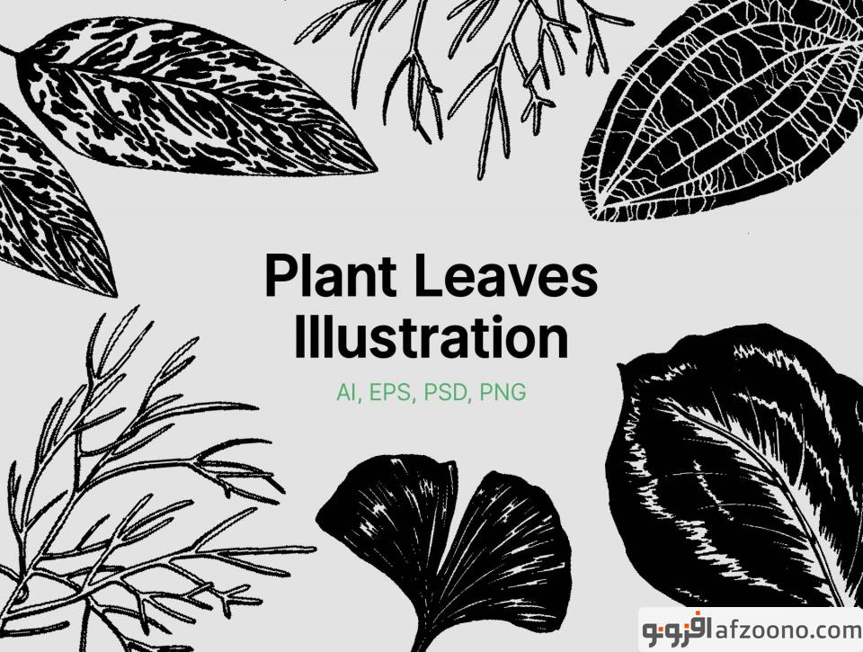 دانلود مجموعه طرح لایه باز تصویرسازی برگ گیاه Plant Leaves Illustrations