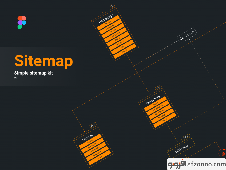 دانلود طرح لایه باز رابط کاربری وایرفریم نقشه سایت Simple Sitemap Kit