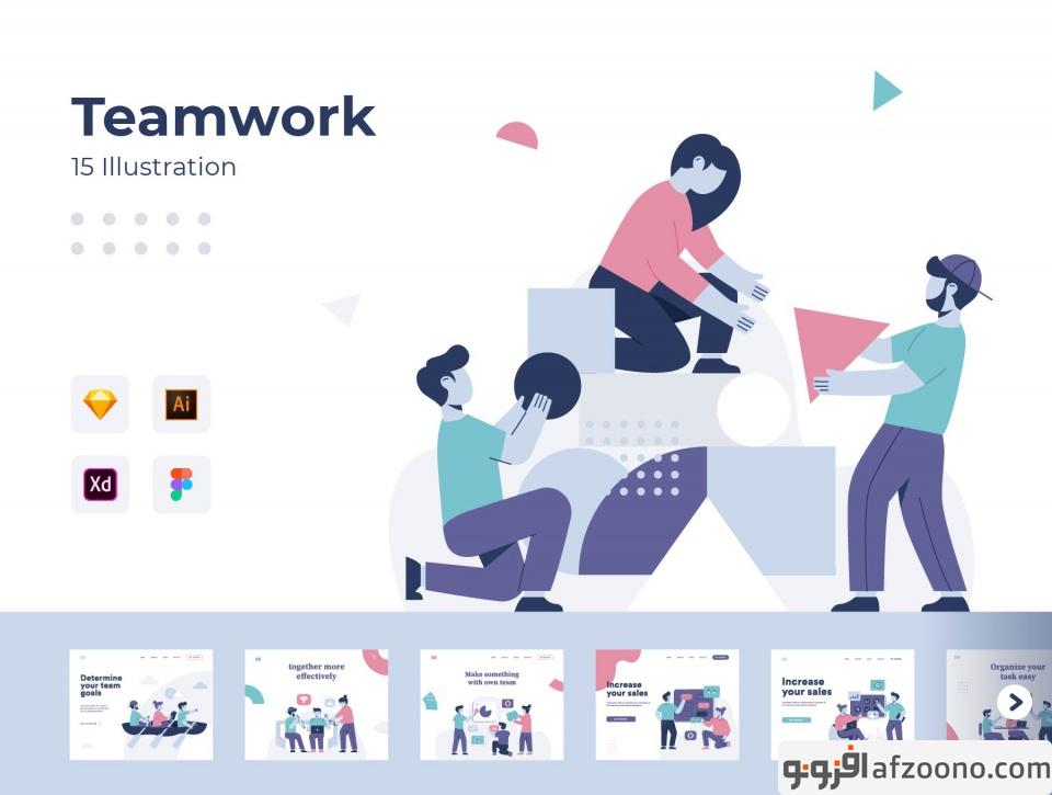 دانلود مجموعه طرح لایه باز تصویرسازی کاری تیمی استارت آپ Teamwork Startup Illustration Pack