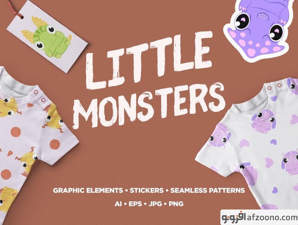 دانلود مجموعه طرح لایه باز وکتور هیولا Pack Of Little Monsters