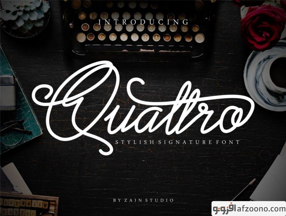Introducing: Quattro, handwritten font with a personal charm. With signature style, Quattro is perfect for branding projects, homeware designs,boutique,hotel name,men apparel name, product packaging – or simply as a stylish text overlay to any background image. Highlights JPG TTF ZIP SCRIPT SIGNSTURE FONT