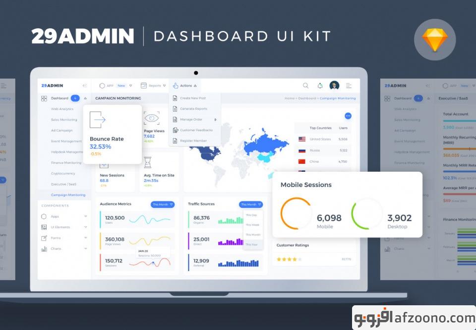 دانلود طرح لایه باز رابط کاربری دشبورد 29Admin Dashboard UI Kit
