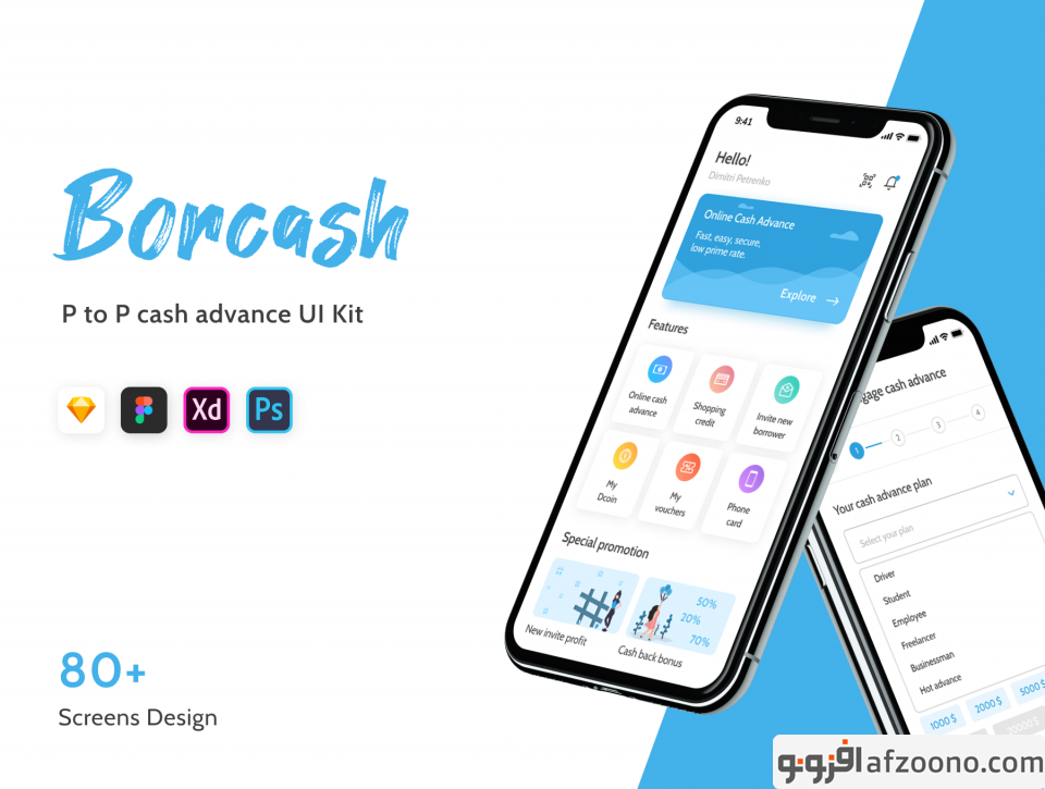 دانلود طرح لایه باز رابط کاربری اپلیکیشن Borcash – P2P Lending UI Kit