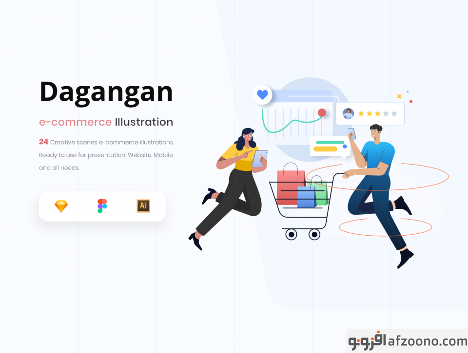 دانلود مجموعه طرح لایه باز تصویرسازی ای کامرس Dagangan – E-commerce and Business Illustration Pack