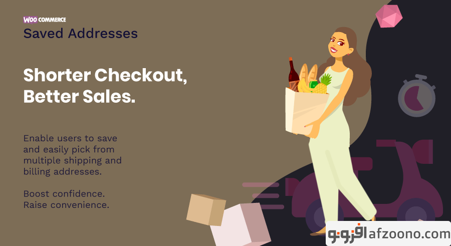 Saved Addresses For WooCommerce پلاگین افزودن امکان ذخیره آدرس و انتخاب از بین آدرس های موجود جهت اطلاعات ارسال و حمل و نقل محصولات برای مشتریان و خریداران در ووکامرس می باشد.