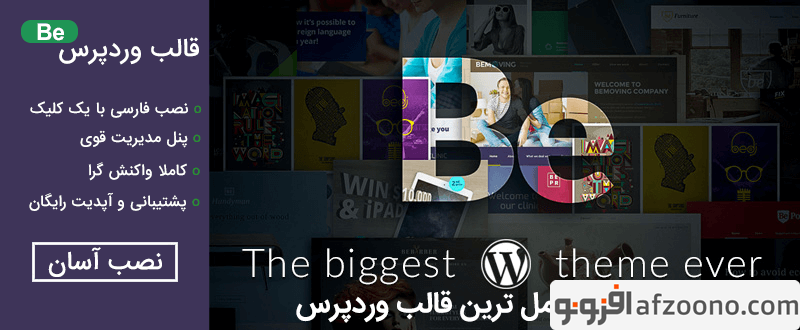 BeTheme نام یک قالب فارسی چندمنظوره وردپرس می باشد که توسط تیم افزونو فارسی سازی شده است از این قالب می توانید در وب سایت های خود با موضوع شرکتی ، فروشگاهی (ووکامرس) ، وبلاگ ، شخصی ، نمونه کارها ، خلاقانه و… استفاده نمایید. قالب وردپرس ریسپانسیو و فروشگاهی بی تم کاملا رسپانسیو میباشد […]