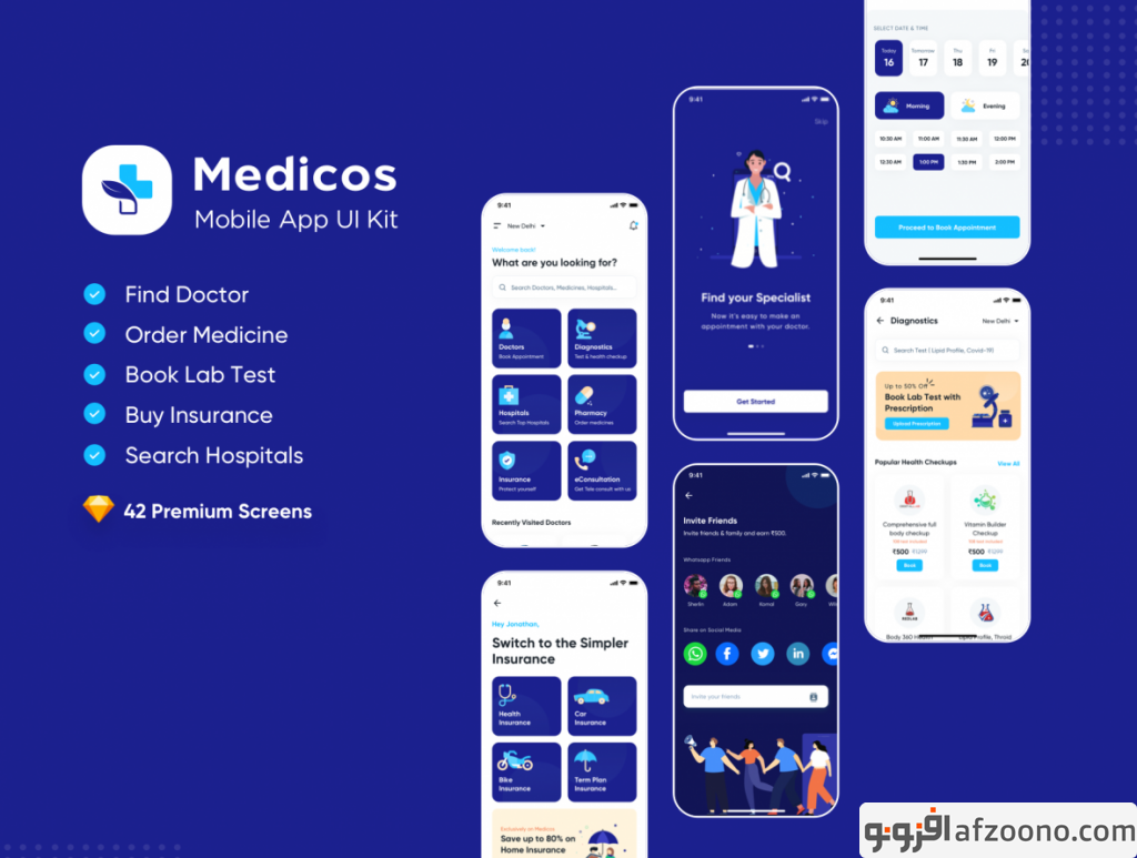 دانلود طرح لایه باز رابط کاربری خدمات پزشکی Medicos – Healthcare Mobile Sketch App UI Kit