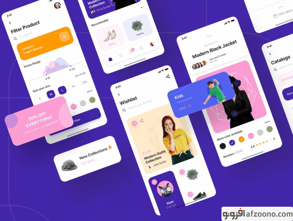 دانلود طرح لایه باز رابط کاربری اپلیکیشن فروشگاه مد Alora Fashion Shop UI Kit