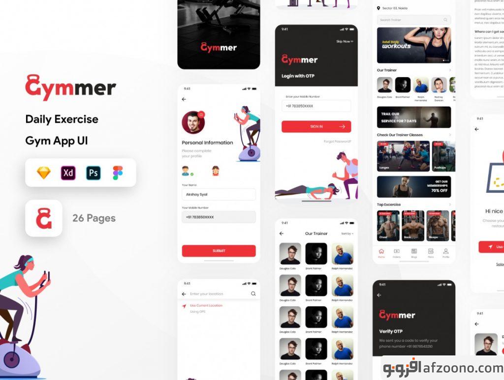 دانلود طرح لایه باز رابط کاربری Gymmer UI Kit