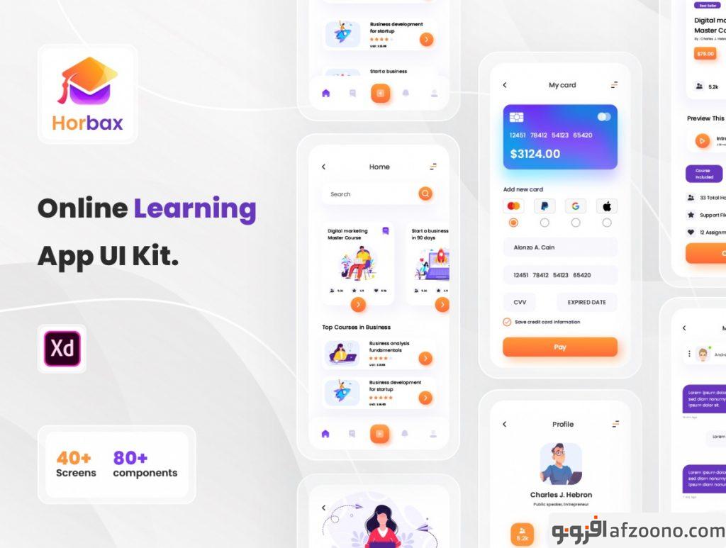 دانلود طرح لایه باز رابط کاربری اپلیکیشن آموزش مجازی Horbax Online Learning App UI Kit.