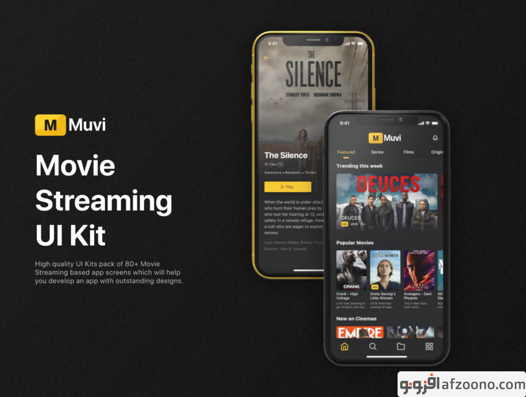 دانلود طرح لایه باز رابط کاربری اپ پخش فیلم Muvi – Movie Streaming UI Kit