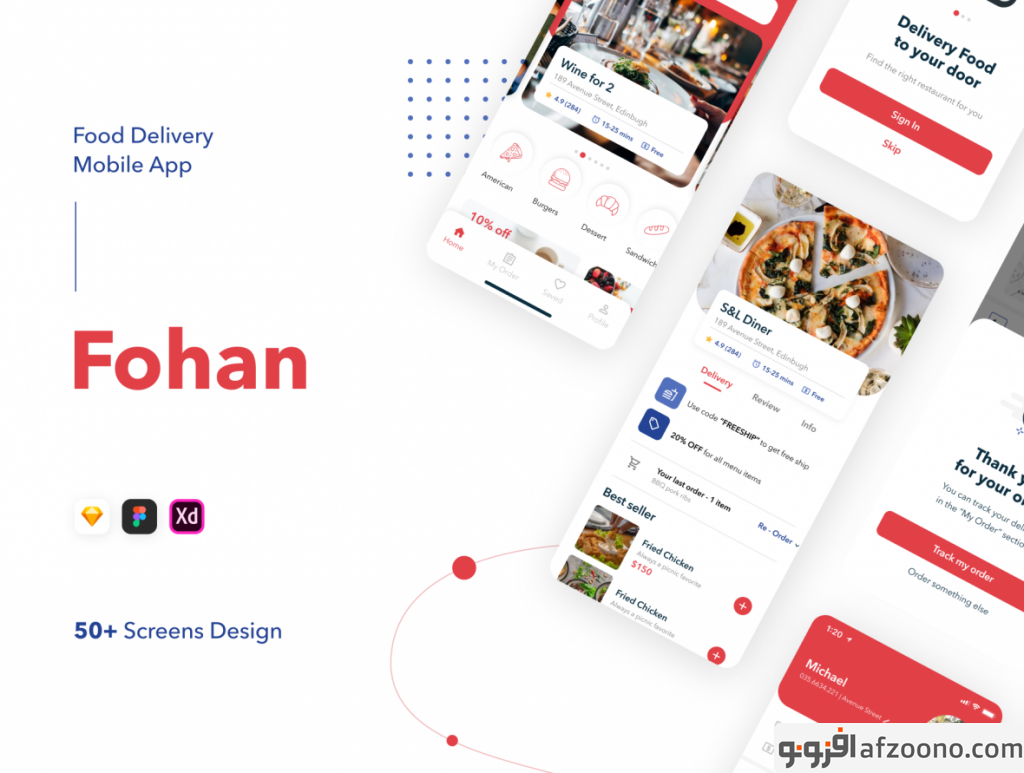 دانلود طرح لایه باز رابط کاربری اپلیکیشن سفارش غذا Fohan – Food Delivery Mobile App