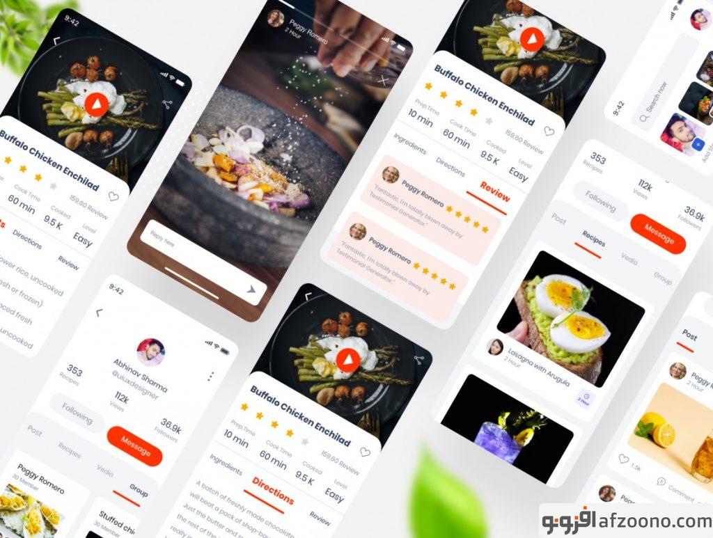 دانلود طرح لایه باز رابط کاربری Learn Cooking – Social application for food lovers UI kit