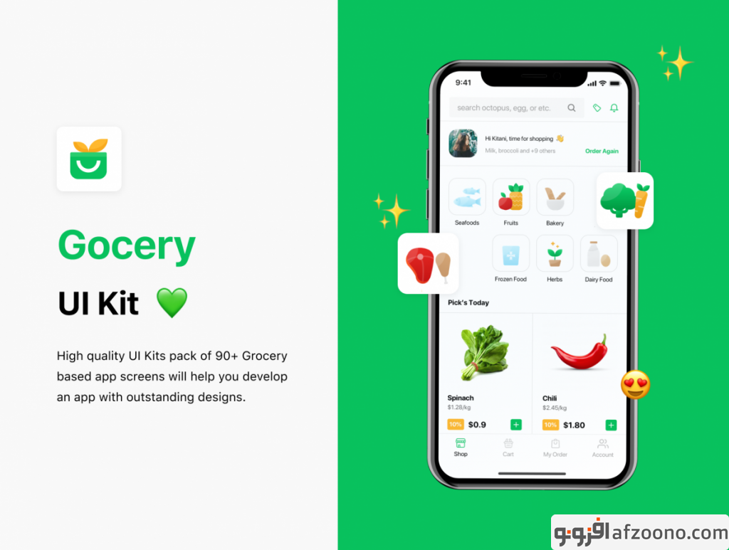 دانلود طرح لایه باز رابط کاربری Gocery – Grocery App UI Kit