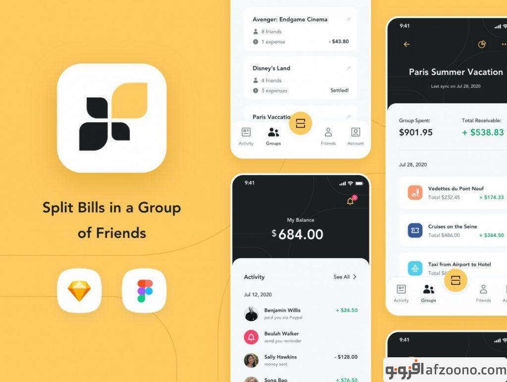 دانلود طرح لایه باز رابط کاربری Fairpay – Split Bill App UI Kit