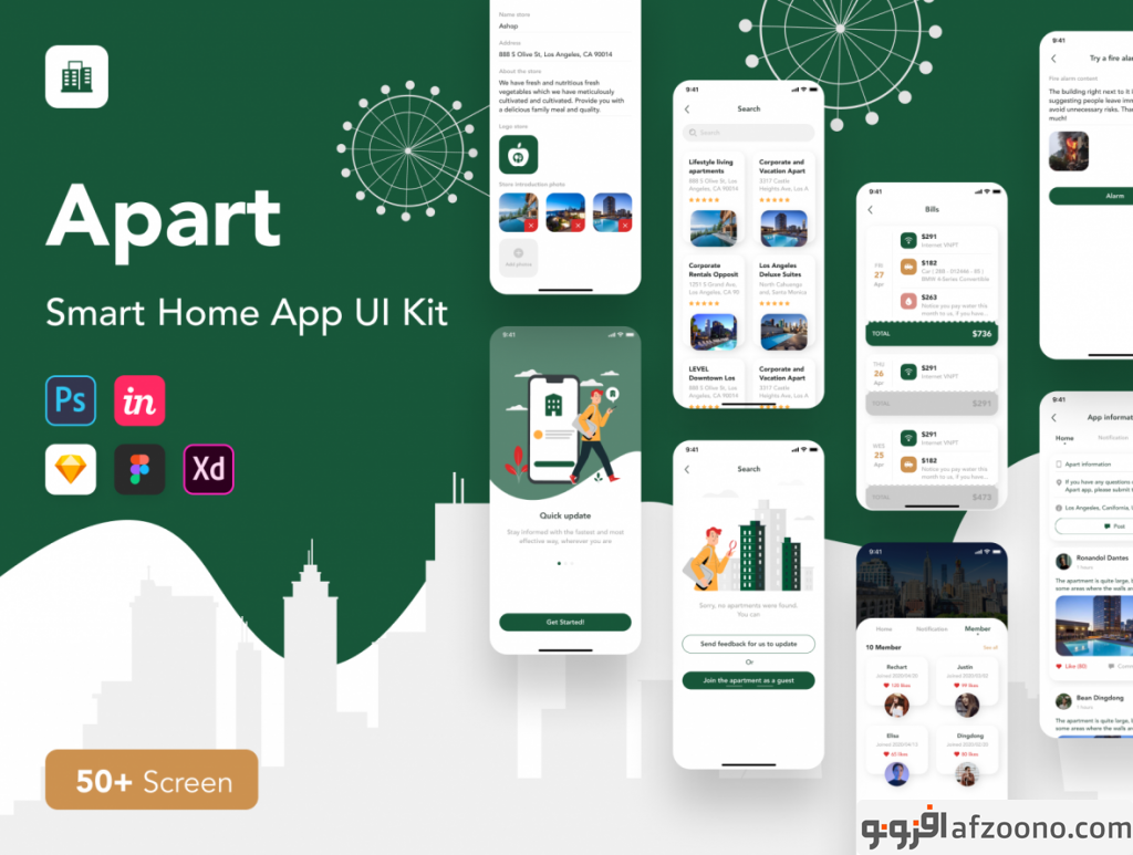 دانلود طرح لایه باز رابط کاربری اپ خانه هوشمند Apart – Smart Home App UI Kit