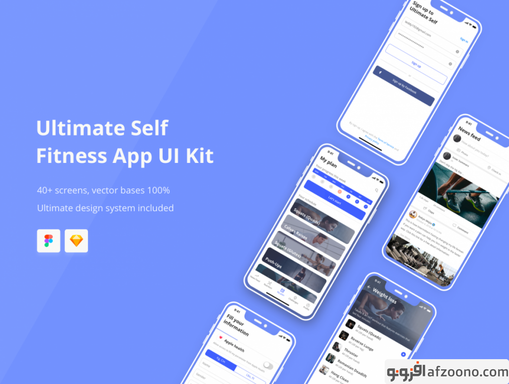 دانلود طرح لایه باز رابط کاربری Ultimate Self Fitness App UI Kit