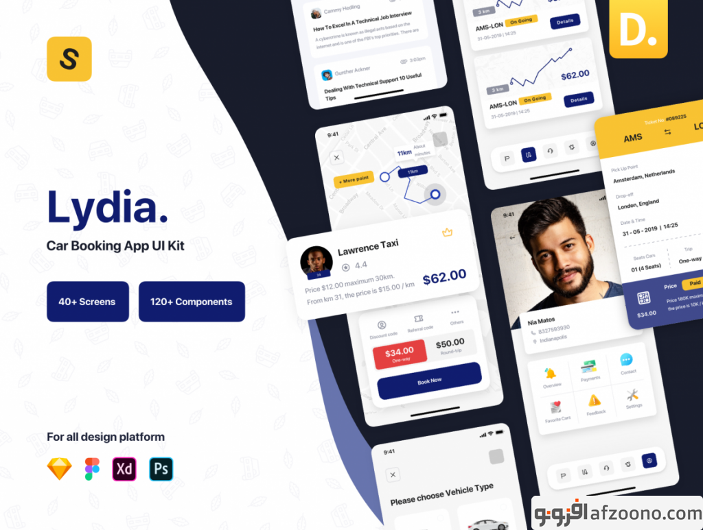 دانلود طرح لایه باز رابط کاربری Lydia – Car Booking & Sharing Mobile App UI Kit