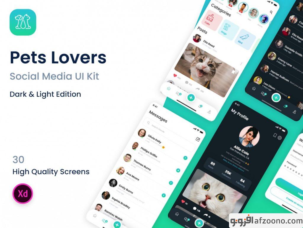 دانلود طرح لایه باز رابط کاربری PetsLovers – Social Media app UI Kit