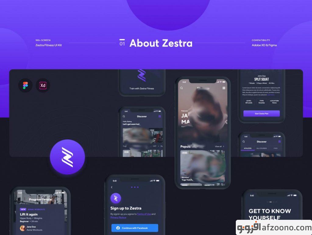 دانلود طرح لایه باز رابط کاربری اپلیکیشن ورزشی Zestra Fitness UI Kit